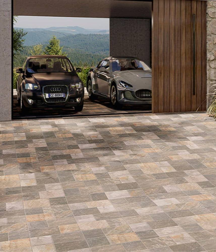 Warm and worn naturally varied terracotta style porcelain tiles.