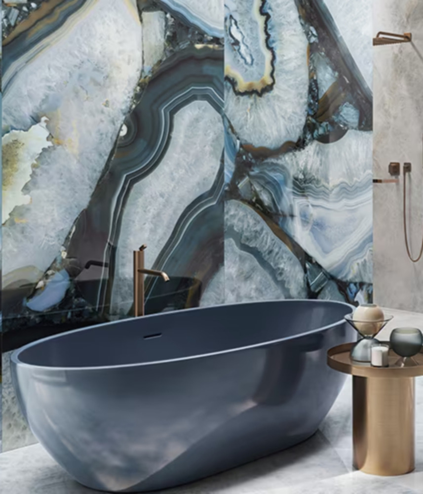 Small to medium size marble and stone effect porcelain includes octagonal shape option.