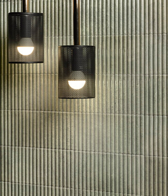 Chic reeded style 3D porcelains and matching non-3D glazed porcelain tiles.