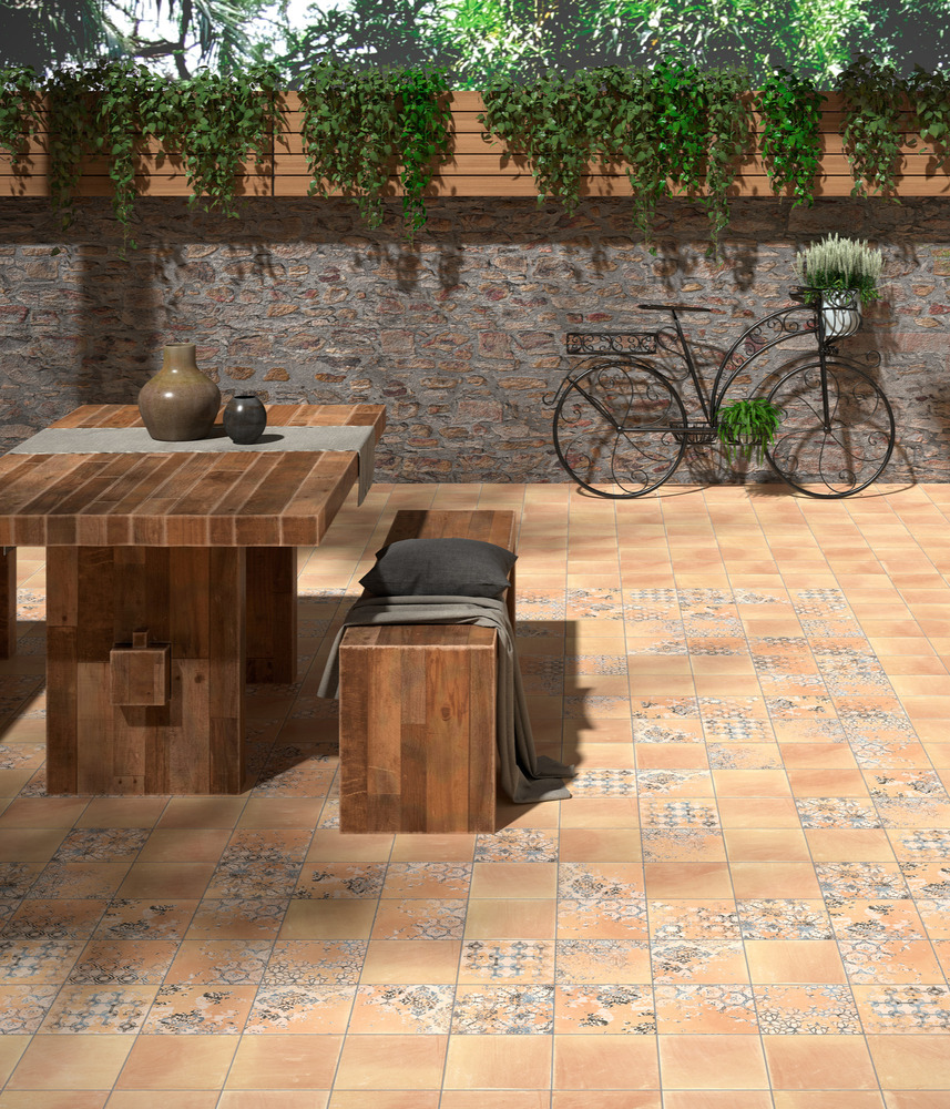 Seemingly infinite pattern possibilities using these terracotta body glazed wall tiles.